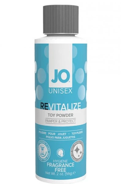 JO Revitalize Toy Powder is designed to increase the lifespan of your toys by keeping them dry during storage. Simply clean and dry the intimate item, then apply thin layer of powder prior to storing. Helps keep that like new feel and stops toys from becoming sticky or oily between uses. Unisex ingredients Zea Mays Corn Starch, Silica, Methylparaben. 2oz