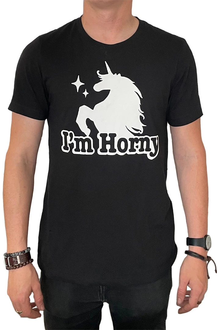 Unisex I’m Horny Unicorn Tee for all those horny boys and girls out there. Printed on super soft high quality Bella Canvas tees. Black tee with white ink. Logo on the back. Unisex fit.