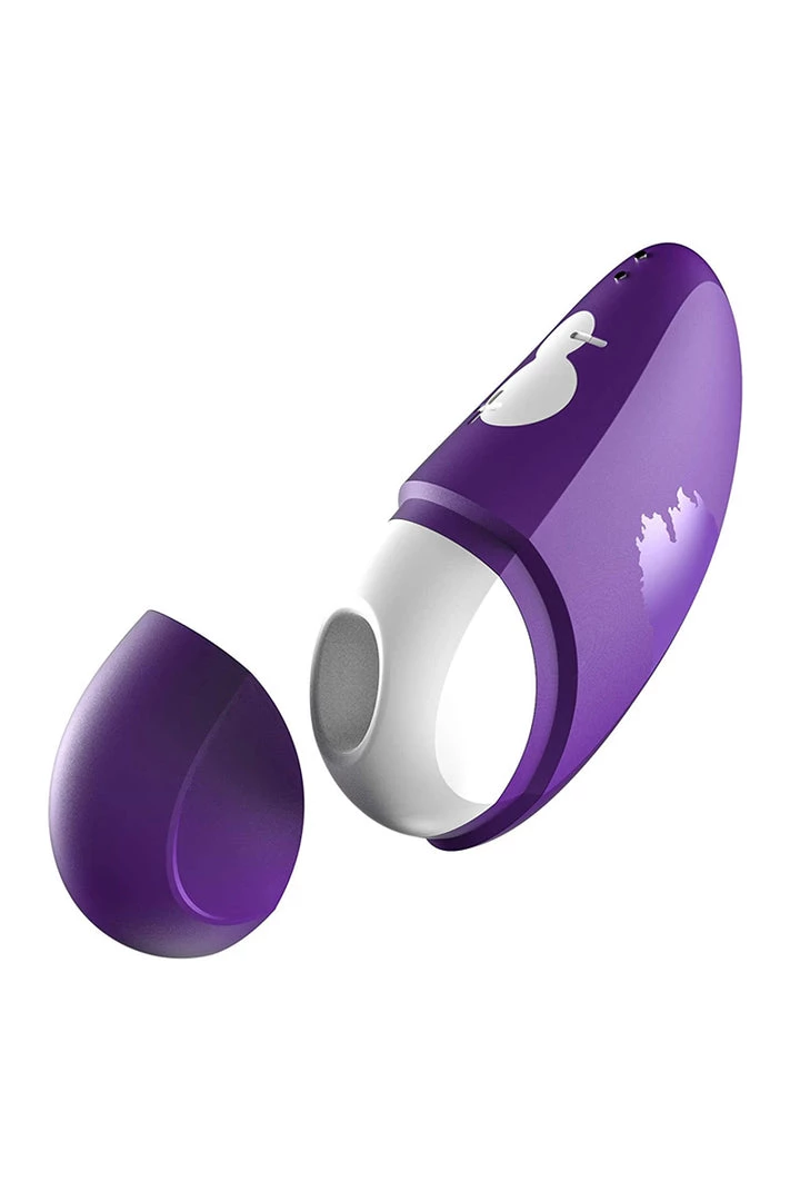 Romp Free Air Pressure Vibrator from the makers of Womanizer and We-Vibe. This bright purple stimulator uses the same signature air pressure technology as the original Womanizer but a fraction of the price. With 10 intensity levels, waterproof and 45 min run time this is the perfect discreet vibrator comes with a travel cover so it is easy to throw in your purse. Rechargeable. Body safe.Â