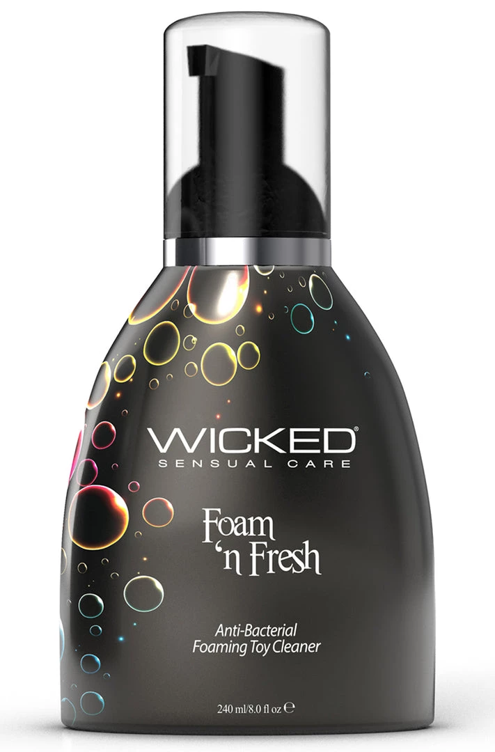 Playtime can get dirty, but your toys should always stay clean. Wicked Foam ‘n Fresh is a toy and body safe alternative to everyday soap and water. Anti-bacterial, triclosan, and alcohol-free, this super powered foam is enhanced with Olive Leaf, Thyme, and Lavender extracts, making it safe for all toy materials yet tough to germs. Use every time it’s time to sanitize, freshen, and protect your intimate investments. This cleaner is a must have for every toy box.