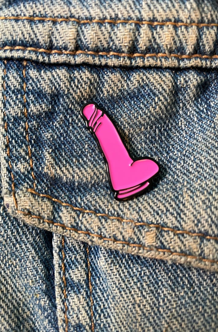The pink dildo enamel pin can be put on any outfit to add some flair.
