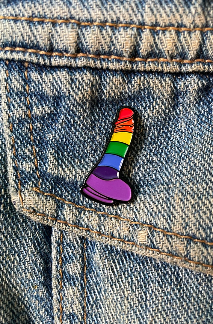 Show your pride with this rainbow dildo enamel pin