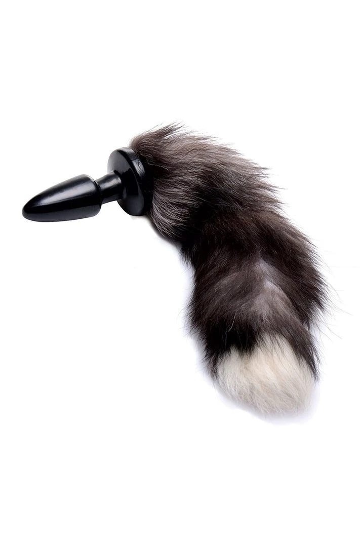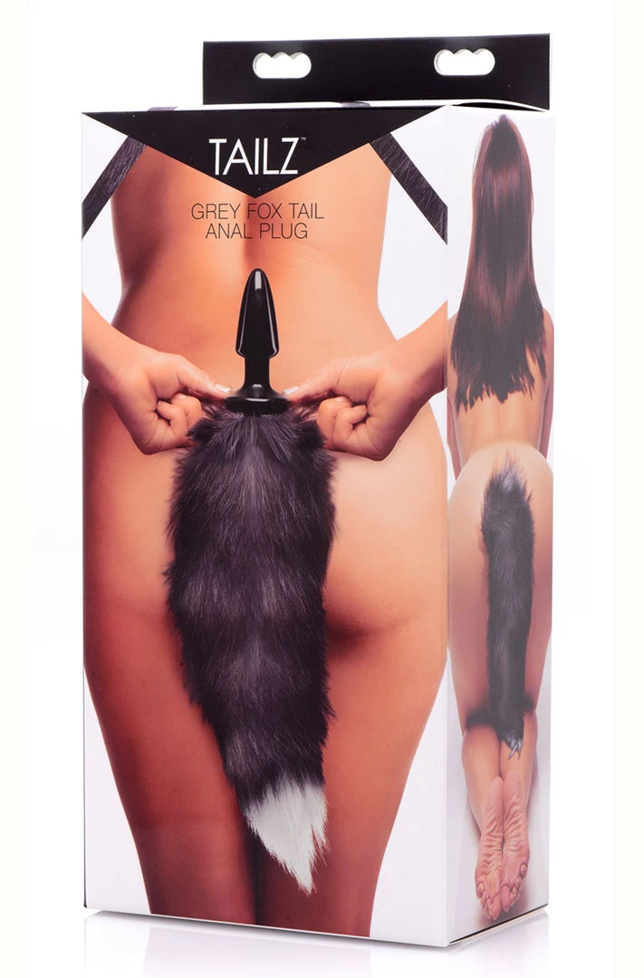 Take a walk on the wild wild with this grey fox tail butt plug. The extra fluffy faux grey and white fur tail has an attached butt plug. Perfect for pet play or foxy cosplay.Â